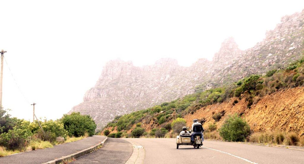 A spectacular route, allows riders to enjoy sightings of numerous aquatic and marine bird species including pelicans, flamingos, terns and gulls. The route then onto Bloubergstrand beach. We stop here for a quick break and opportunity to take a selfie with the iconic Table Mountain as a backdrop. Then, its time to re-board your sidecar & continue northwards along the coast enjoying the beachfront activity & scenery with the famous Robben Island in the background.